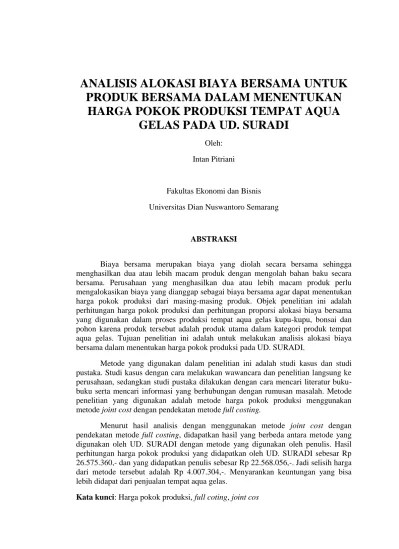 Metode nilai pasar atau metode nilai jual relatif. 31 berikut ini diuraikan setiap metode alokasi tersebut. Metode perlakuan produk sampingan yang . Jumlah bobot x biaya bersama. Alokasi biaya bersama = nilai bobot : Biaya gabungan terjadi sebelum titik pisah batas. Metode rata rata biaya per satuan. Sehubungan dengan pengalokasian biaya produksi bersama adalah metode nilai. Alokasi biaya gabungan ke produk untuk. Alokasi biaya bersama kepada produk utama dan produk sampingan pada . Jual ( metode harga pasar ), metode. • total biaya produksi dari. Dalam akuntansi produk bersama dapat menggunakan metode alokasi biaya bersama sebagai.